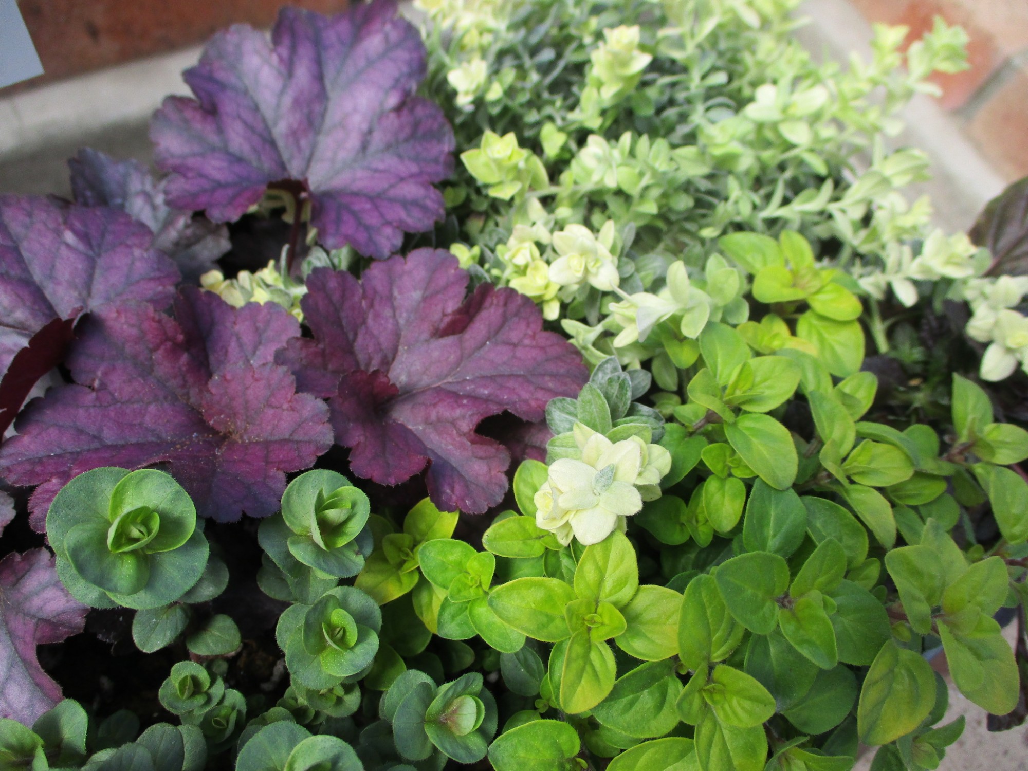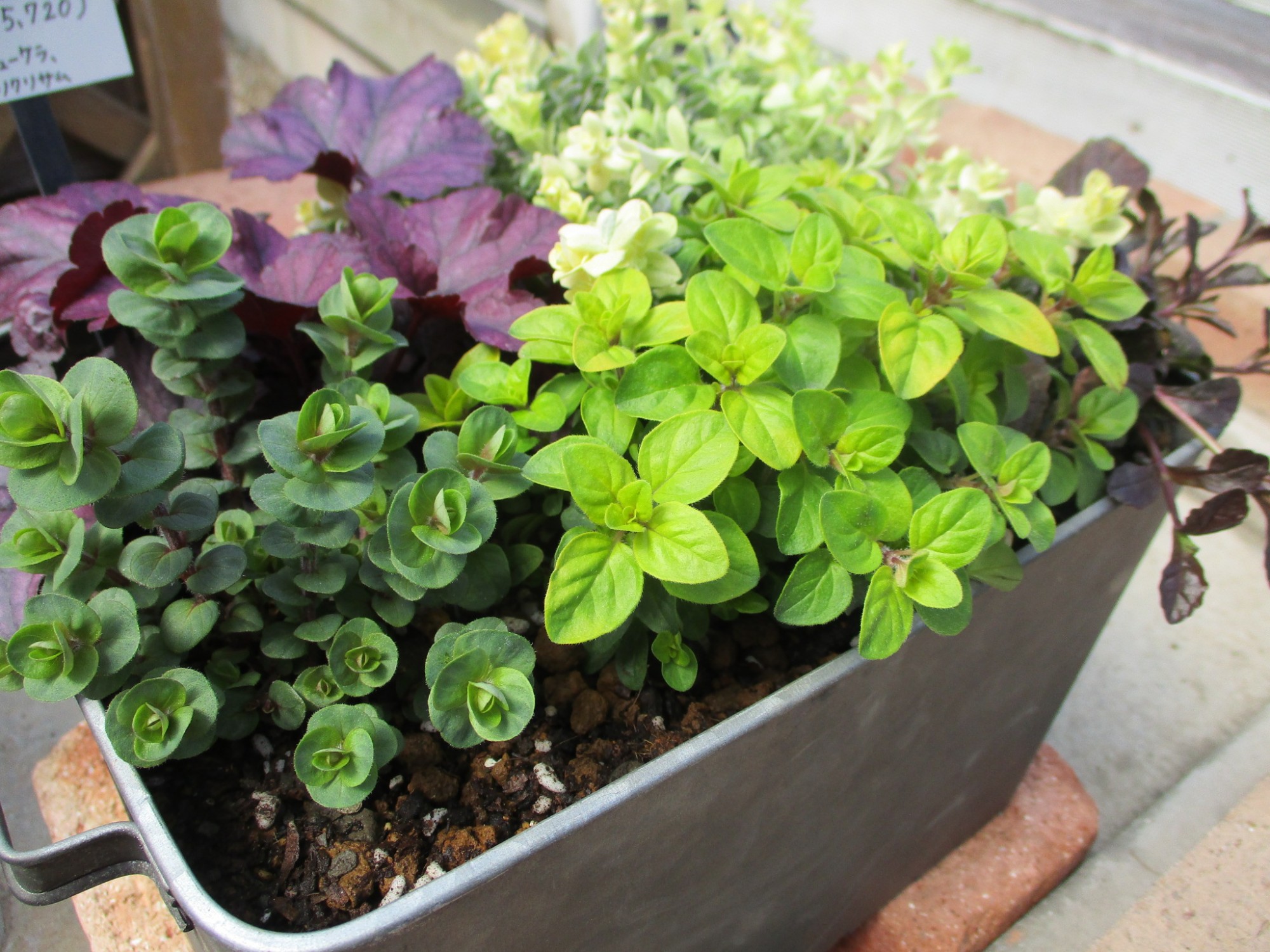 おしゃれな色合いの寄せ植えできました ブリキ缶でシャビーに。とってもいい感じに仕上がっています♪
