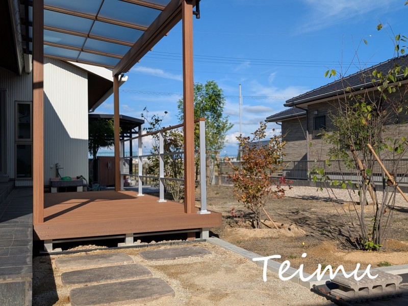 お庭にリビングをテラス屋根とウッドデッキ 安城市 外構 エクステリア