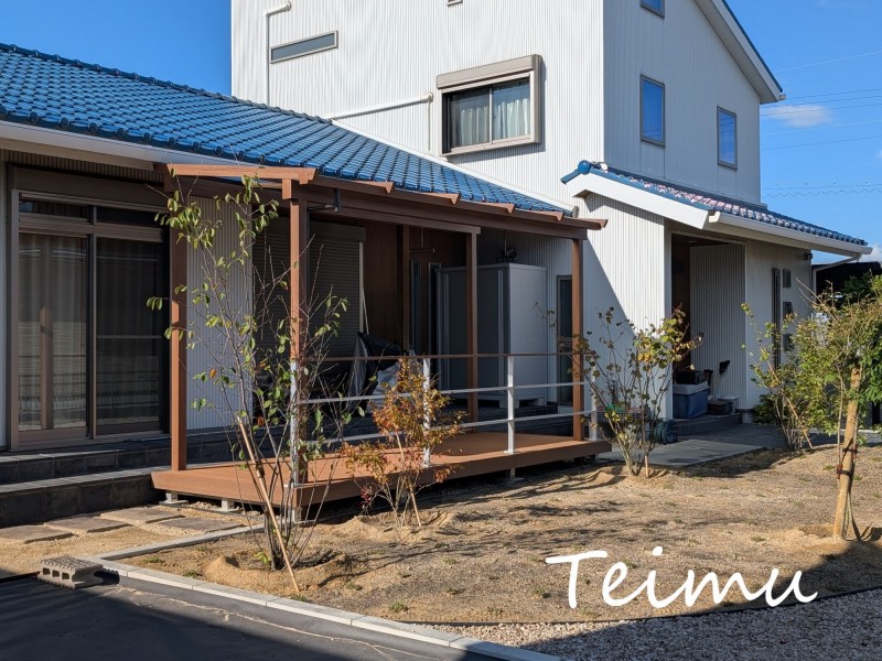 お庭にリビングをテラス屋根とウッドデッキ 安城市 外構 エクステリア