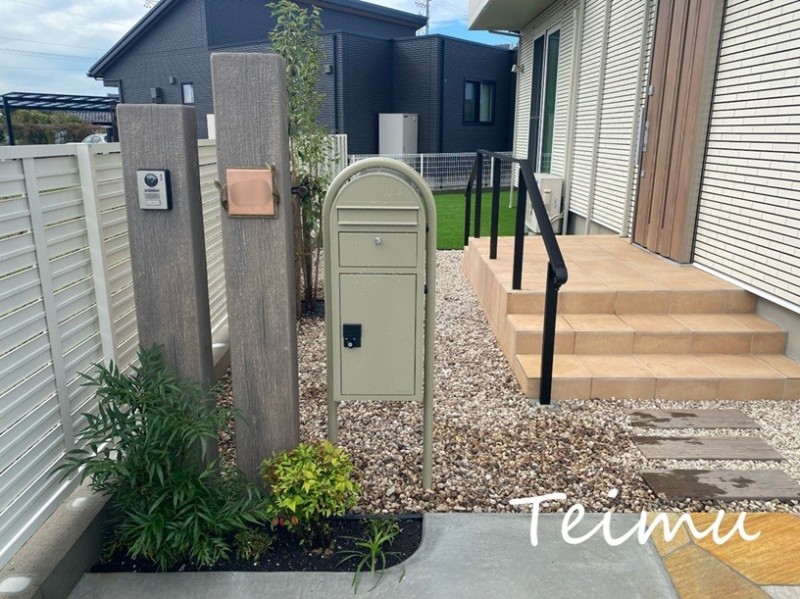 北欧フィンランドの宅配ボックス、ボビカーゴと枕木風門柱のディーズガーデン アルモでおしゃれな門まわりになりました。