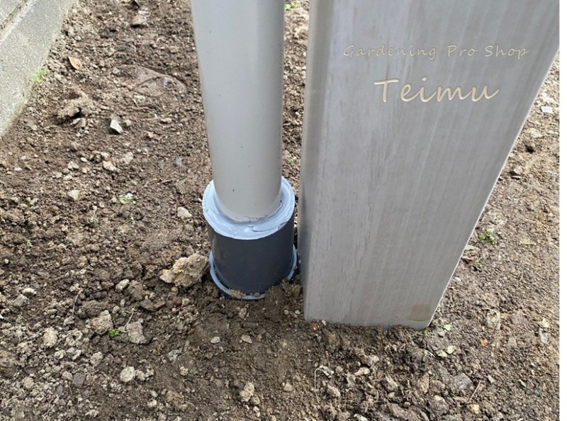 テラスの樋を配管でつなげ、近くの桝に直接雨水が流れるようにしました。地上に雨水が流れ出ないので見た目もスッキリです。