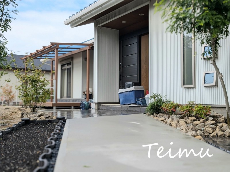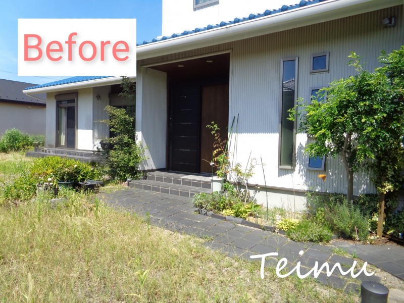 雑草防止を第一に、玄関前の段差を減らしてフラットなスペースを広くしました。自転車も通りやすくノンストレスです。